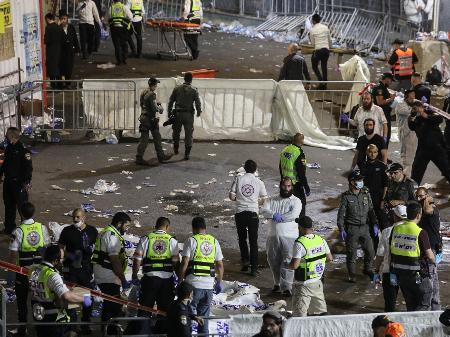 Dezenas de pessoas morreram após serem pisoteadas durante um festival religioso na cidade de Meron, em Israel, na madrugada de sexta (horário local, noite de quinta no Brasil). O número oficial de mortos no incidente ainda não foi divulgado. O jornal local The Times of Israel, que teria confirmado as informações com a polícia, afirma que há mais de 44 vítimas. Além dos mortos, o serviço de ambulância Magen David Adom, equivalente a Cruz Vermelha, estima que 103 pessoas ficaram feridas.