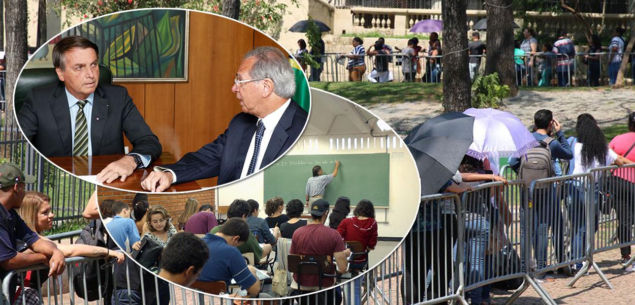 Sem saber que era gravado, o ministro da Economia, Paulo Guedes, reclamou que o governo federal deu bolsas em universidades para “todo mundo” por meio do Fundo de Financiamento Estudantil (Fies), aponta reportagem do Estado de S. Paulo, assinada por Mateus Vargas. “Guedes disse que o filho do seu porteiro foi beneficiado mesmo após zerar o vestibular, ainda que o programa tenha exigências de nota mínima para aprovar o financiamento”, relata o repórter. Para o ministro, o Fies foi um “desastre” que enriqueceu meia dúzia de empresários.