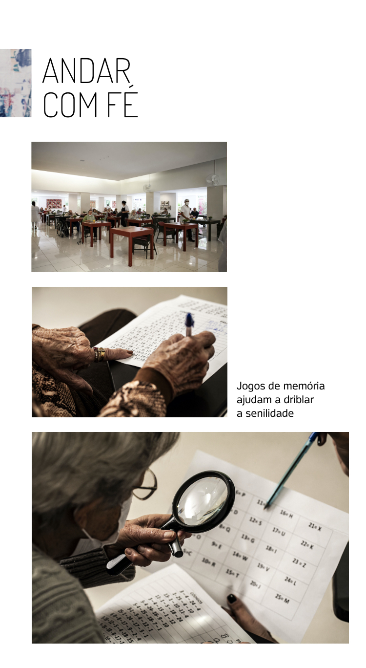 Sentadas em duas fileiras de cadeiras, diante do retroprojetor conduzido por uma psicóloga, as sete velhinhas tinham de acertar, de memória, quais letras e números formavam um par, depois de observar uma tabela projetada no painel. Parece que gabaritavam. Em seguida, a psicóloga propôs o mesmo exercício com formas geométricas e, depois, palavras: