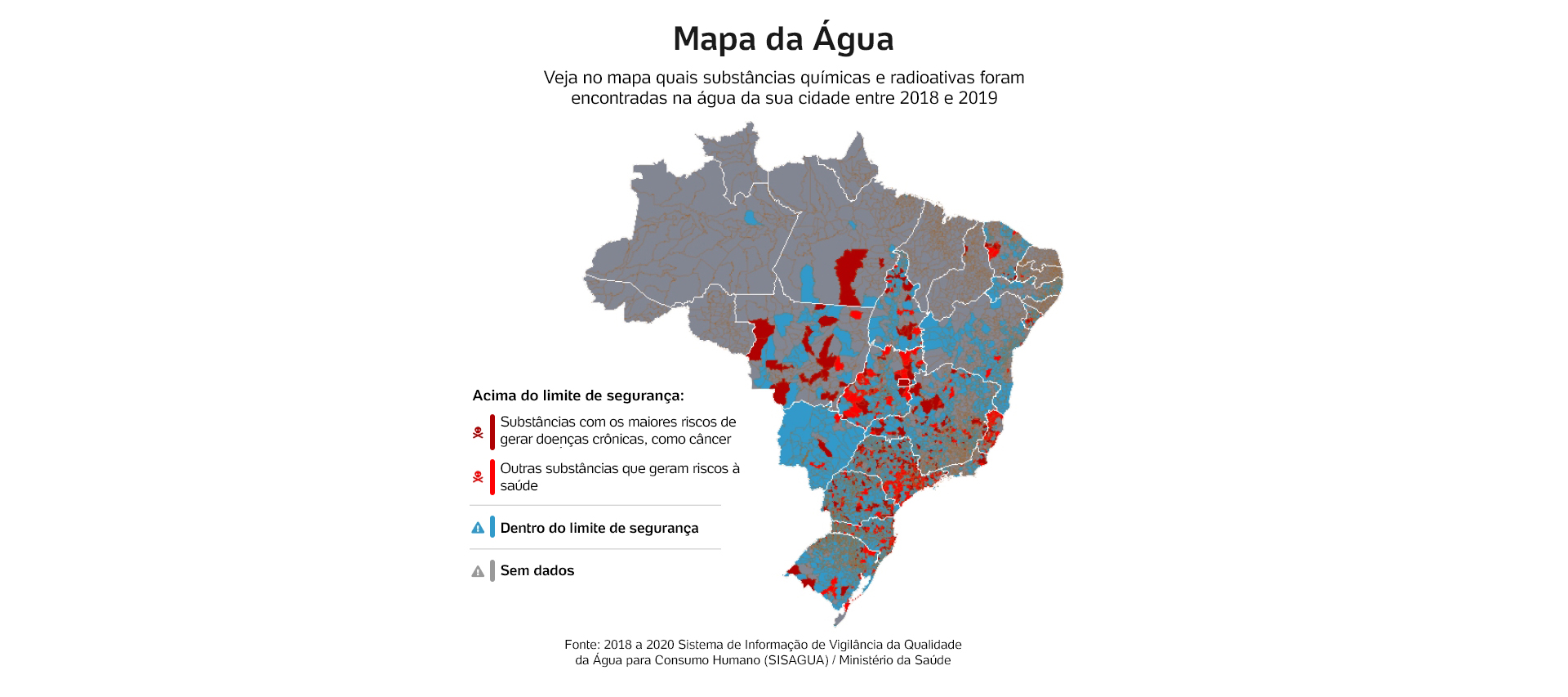 _________________________________________________Mapa da contaminação: Produtos químicos e radioativos foram encontrados em testes feitos com água da torneira em 763 cidades _________________________________________________